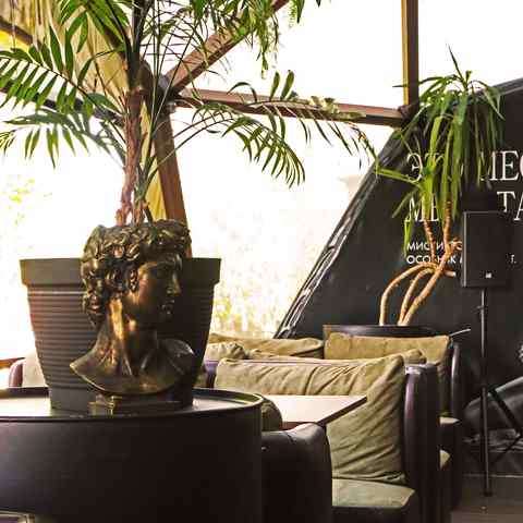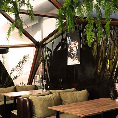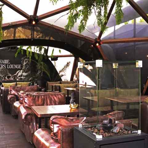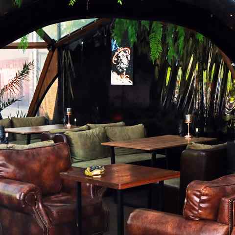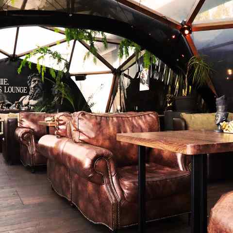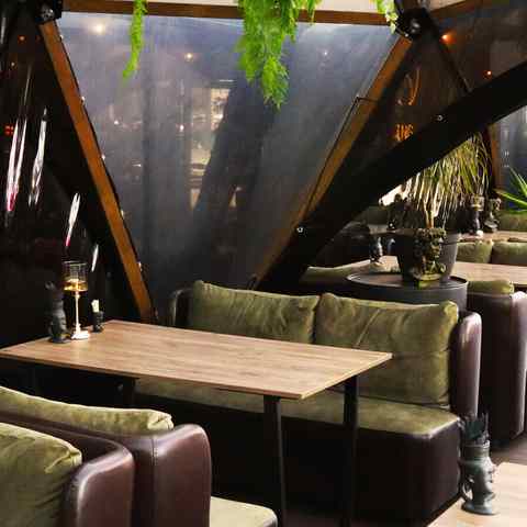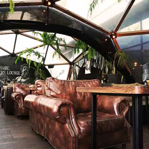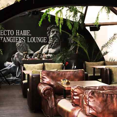 Уютная терраса кальянной Tangiers Lounge — пространство, где комфорт сочетается с эстетикой. Панорамные стены наполняют террасу мягким светом, создавая ощущение уединённости. Кожаные кресла, растения и приглушённое освещение располагают к отдыху вдали от суеты.